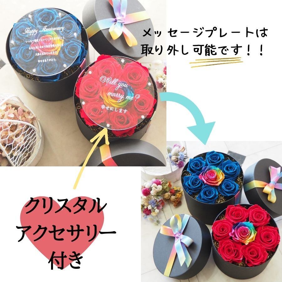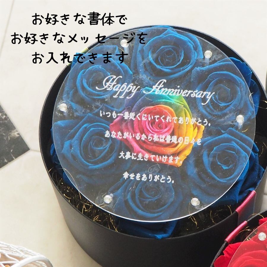 【名入れ】プリザーブドフラワー ギフト レインボーローズ ブルーローズ サークルボックス ボックスアレンジ プレゼント 誕生日 バレンタイン お祝い 卒業 成人式 ブライダルプレゼント
