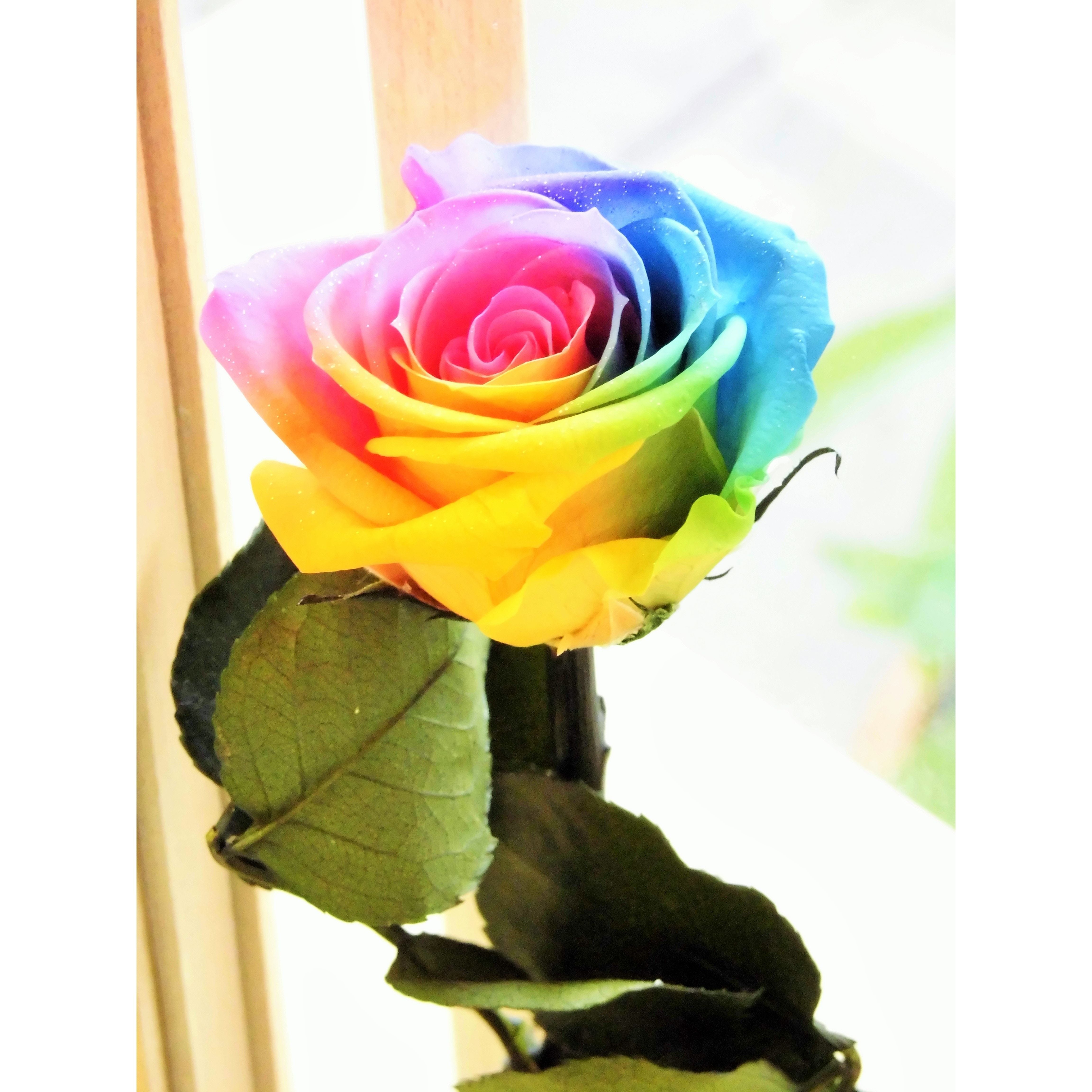 【名入れ】プリザーブドフラワー レインボーローズ”Rainbow Herbier"Arrangement 茎までプリザーブドフラワー1輪挿し 原色