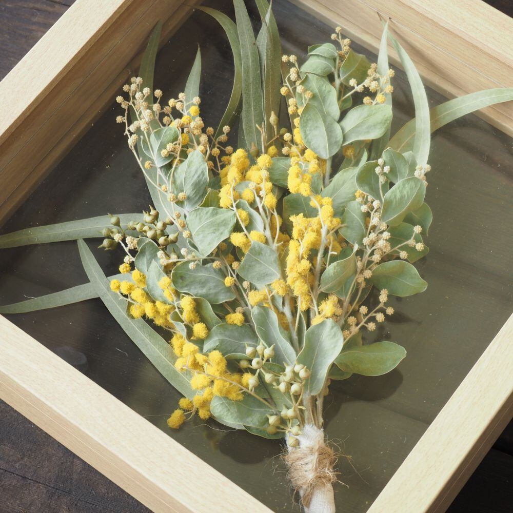 【名入れ】ミモザ ドライフラワー フレームブーケ フレームアレンジ 花婚式 ブライダルアイテム 敬老の日 お買い得品